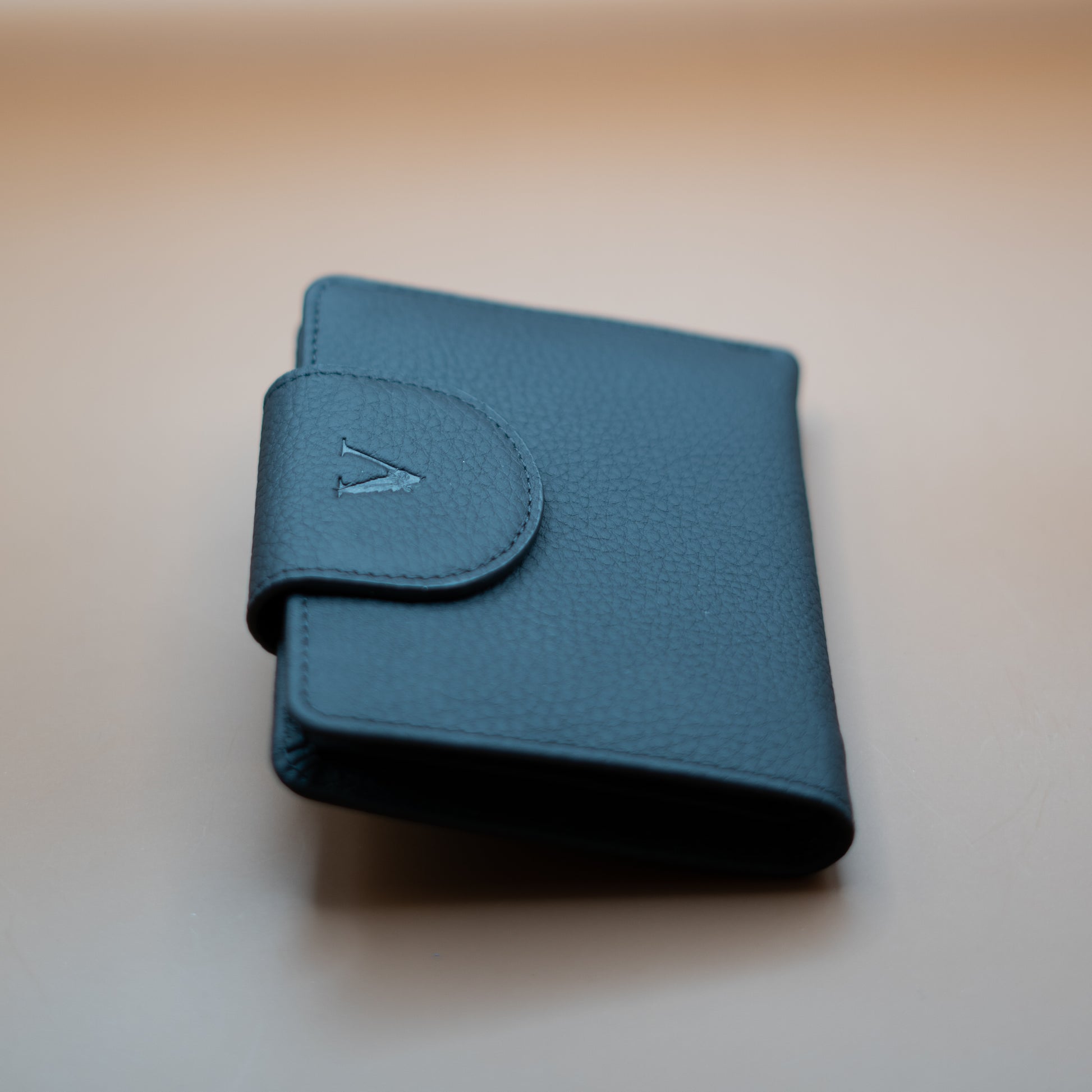 Its snap-closure design ensures security while providing easy access to contents. Inside, it features 12 card slots, one transparent pocket, and two spacious bill compartments, seamlessly blending classic and modern style.